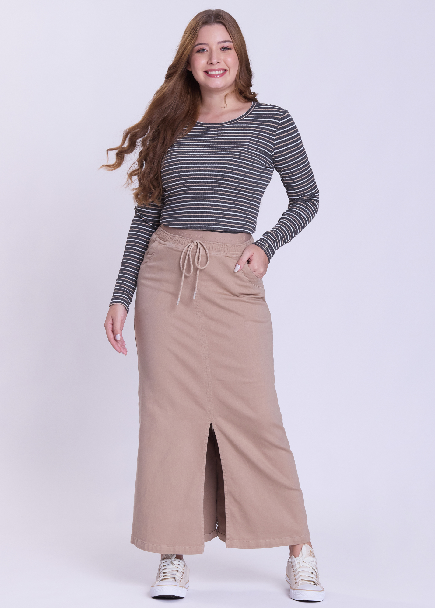 Saia Ana Clara Jeans Color Bege Hapuk